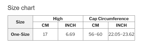 | One-Size | 17 | 6.69 | 56~60 | 22.05~23.62 |