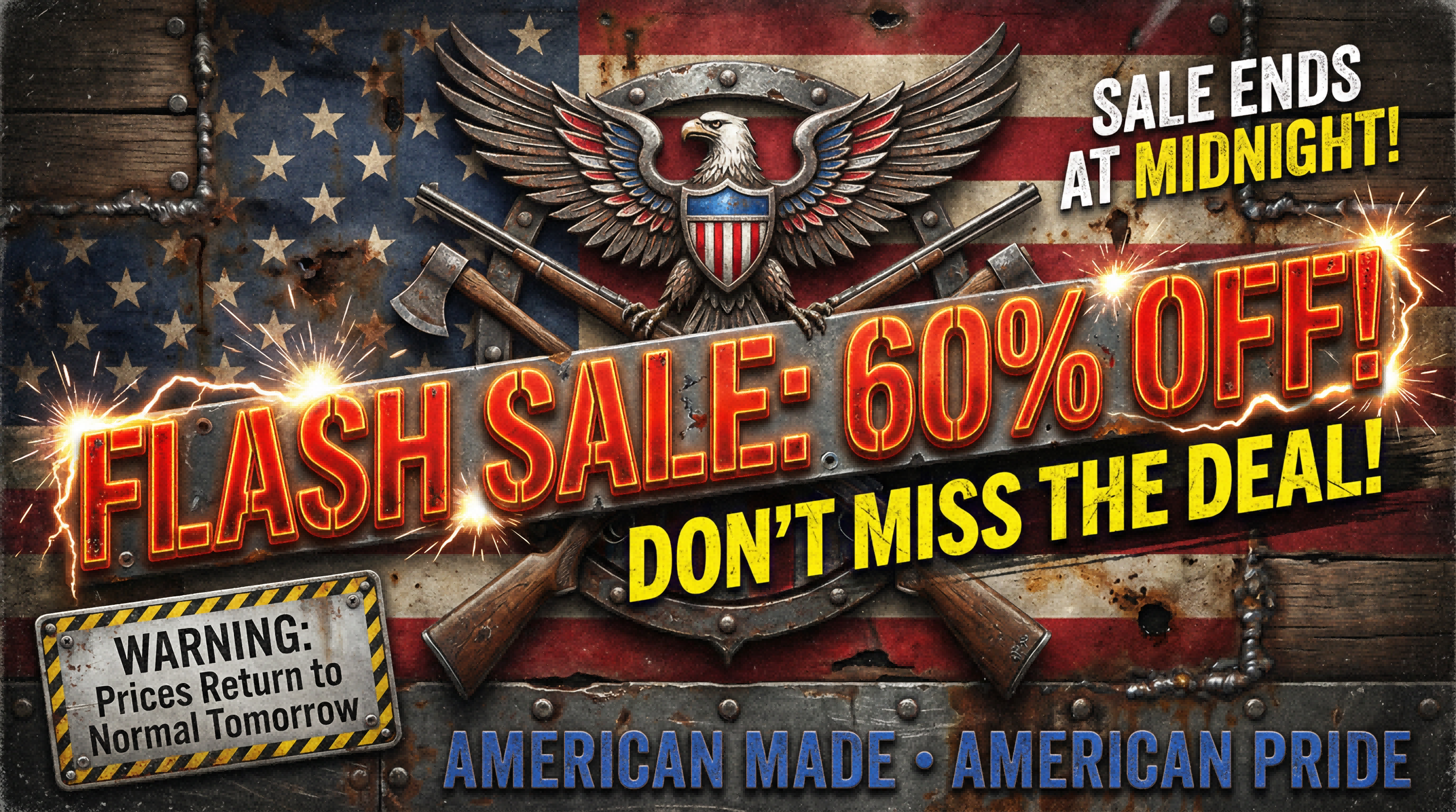 A flowing American flag backdrop, rendered in vivid red, white, and blue enamel tones