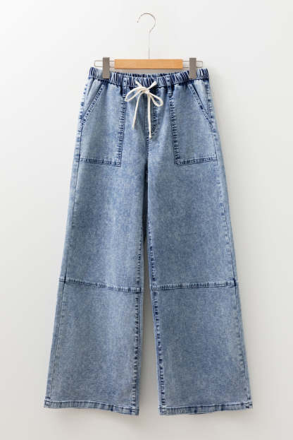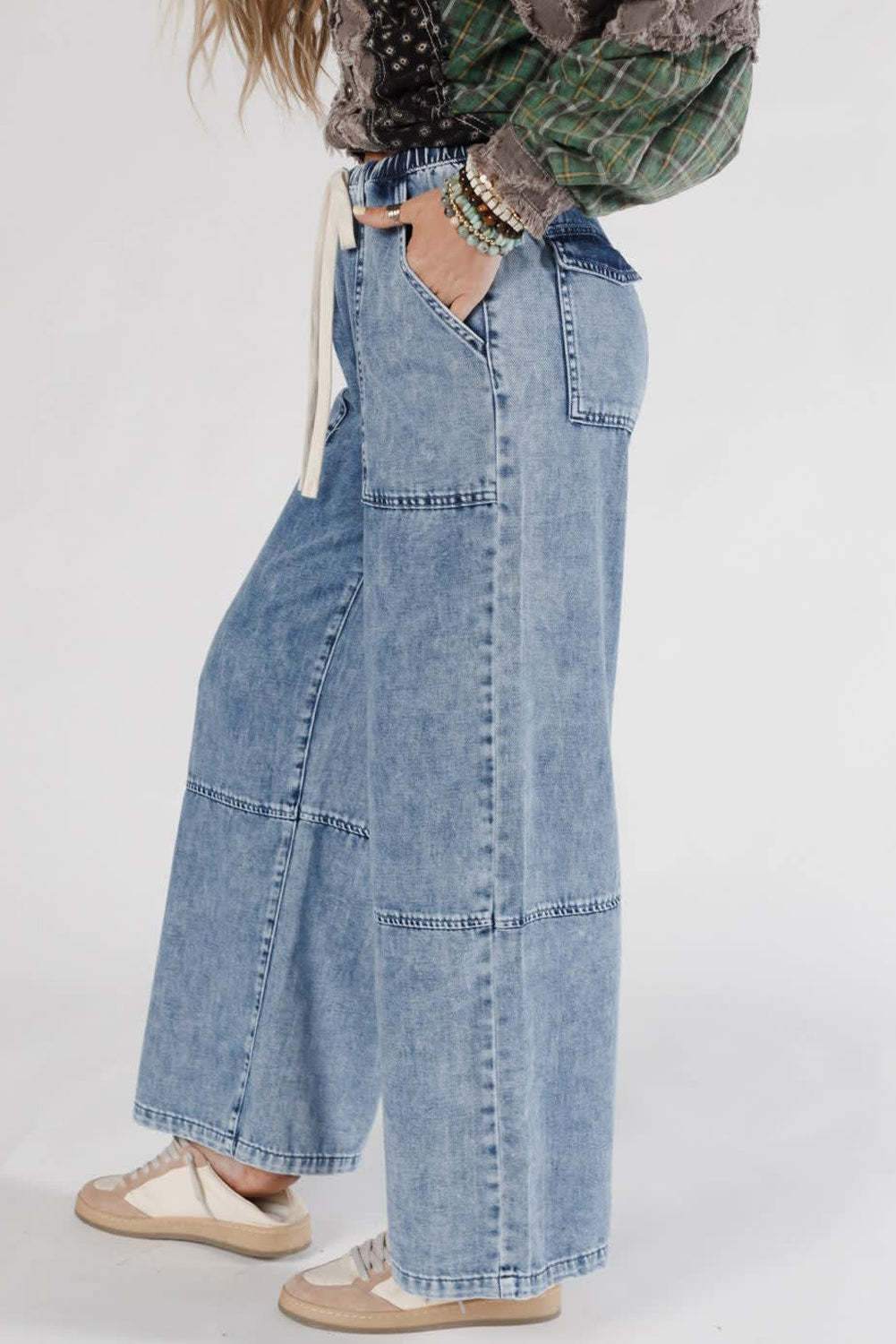 Ashleigh Blue Acid Wash Exposed Seam Drawstring High Waist Jeans