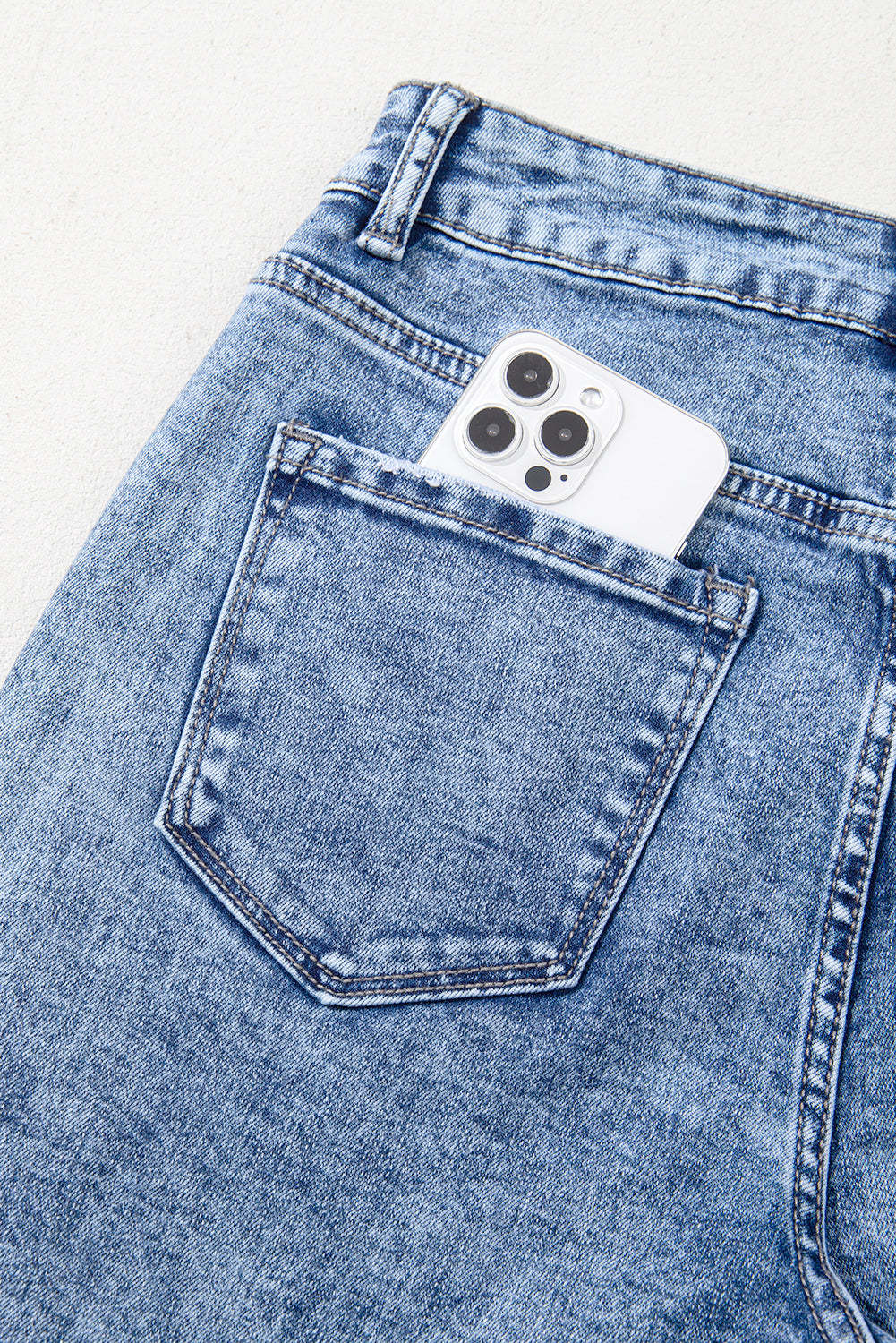 Ashleigh Blue Mineral Wash Bottom Cuff Distressed Wide Leg Jeans