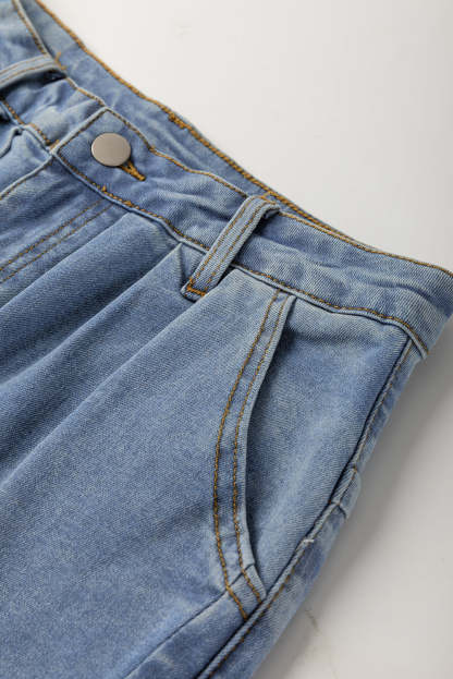 Ashleigh Blue Washed Pleated Detail Wide Leg Jeans