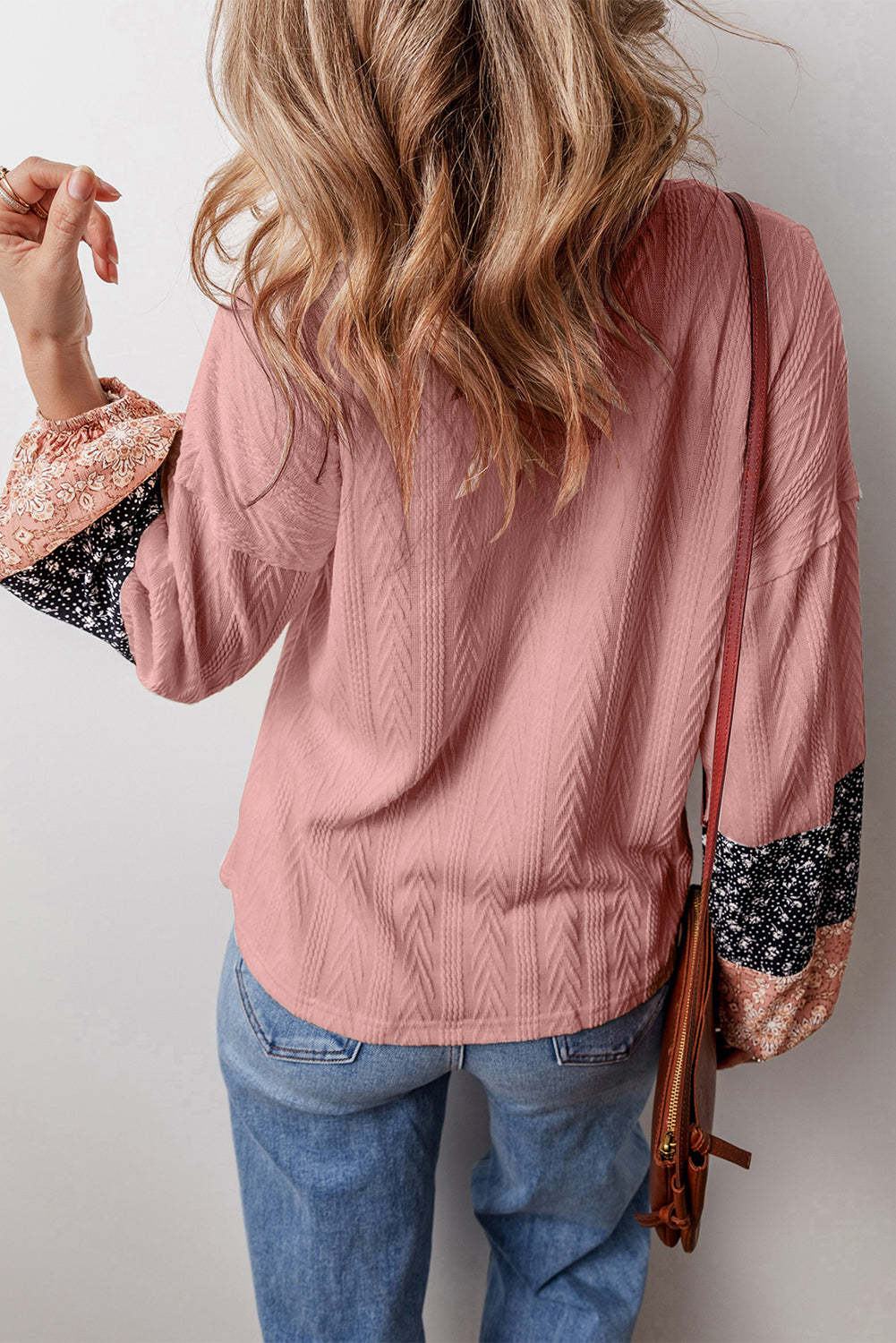 - Luxurious floral patchwork design of this knit blouse is graceful and appealing.