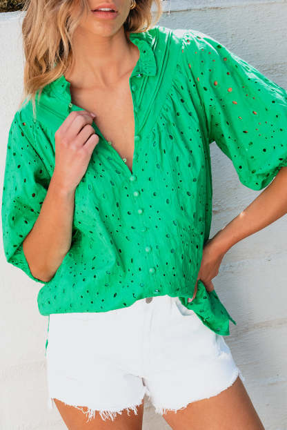 - This hollow-out blouse offers a unique touch
