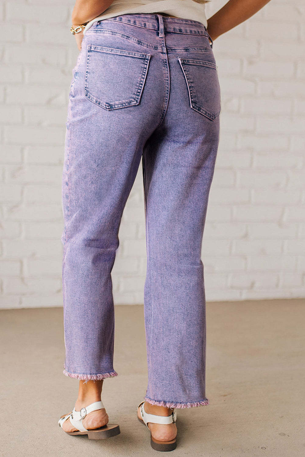 Orchid Petal Vintage Wash Frayed Hem Ankle-length Jeans