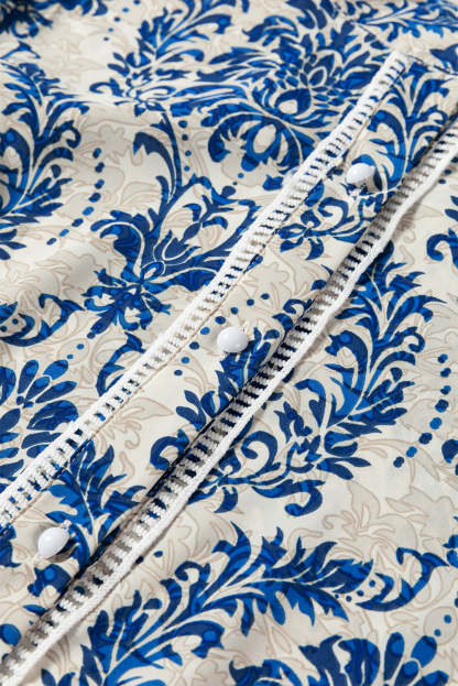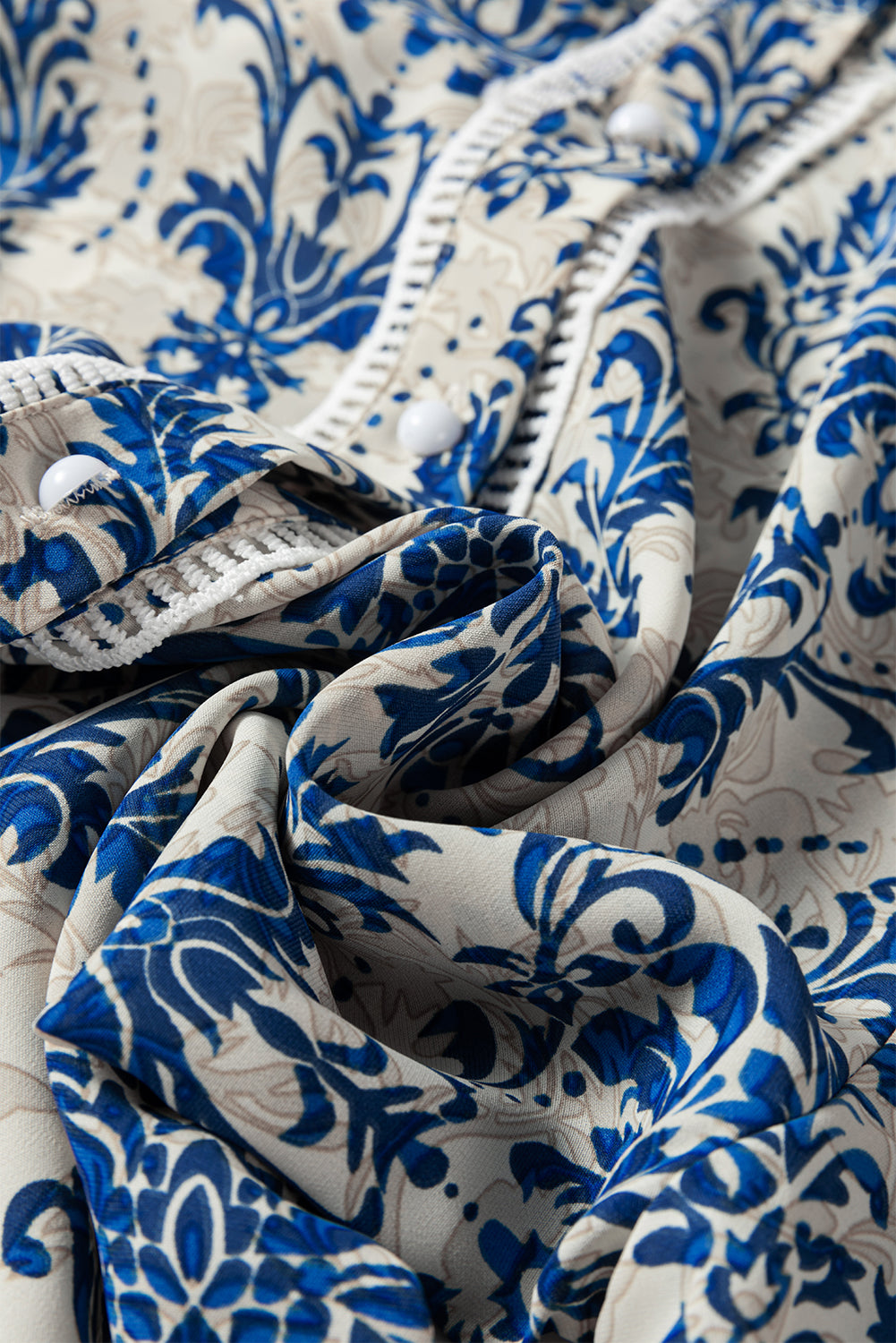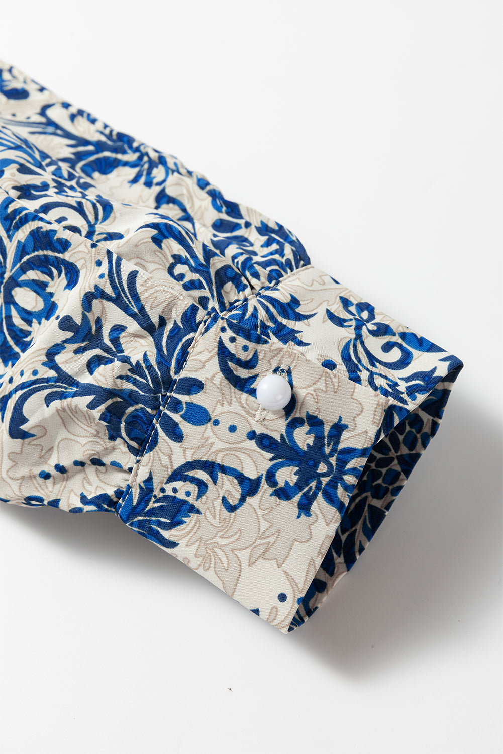 Sky Blue Bohemian Printed Bishop Sleeve Lace Shirt