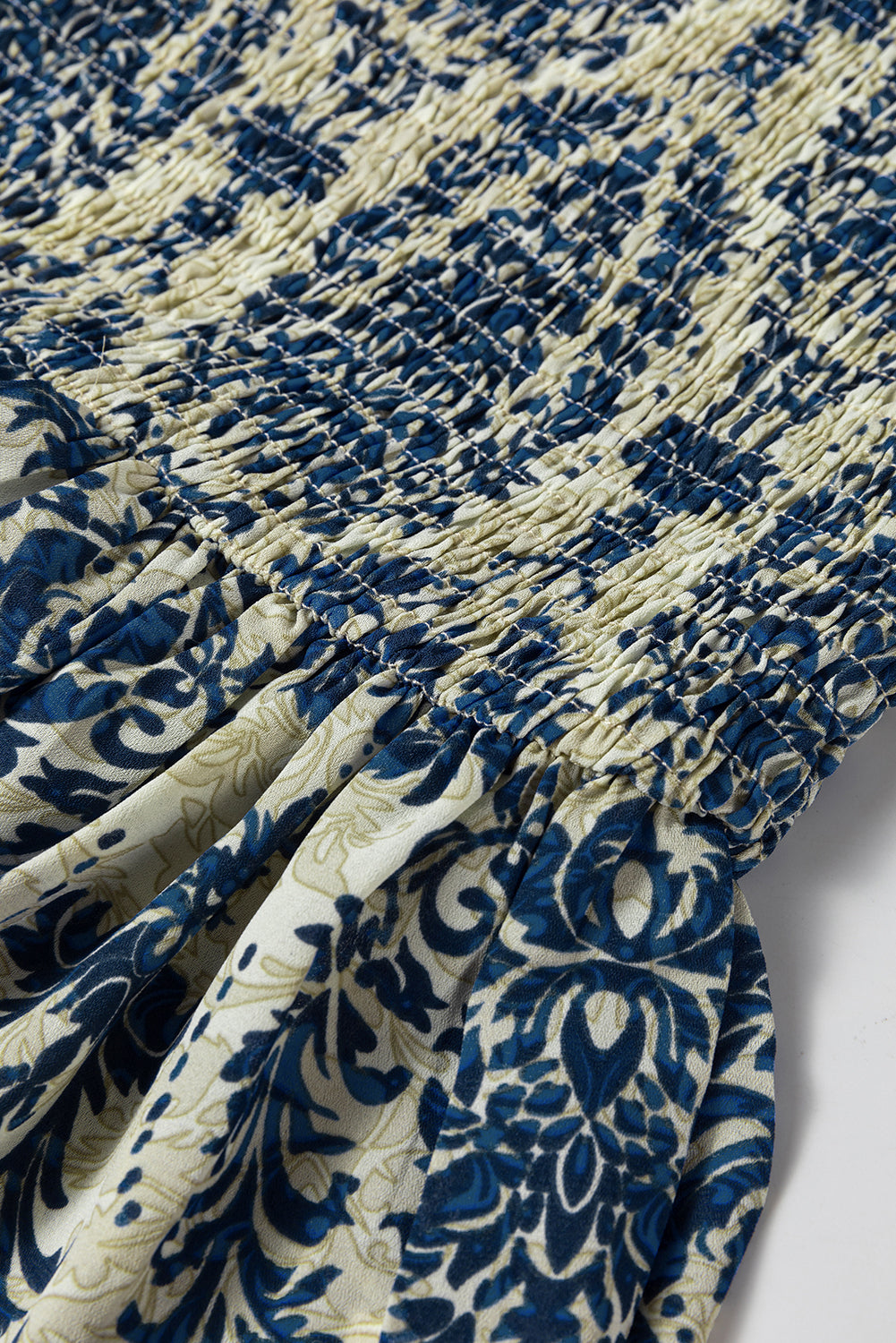 Sky Blue Boho Printed Balloon Sleeve Smocked Peplum Blouse